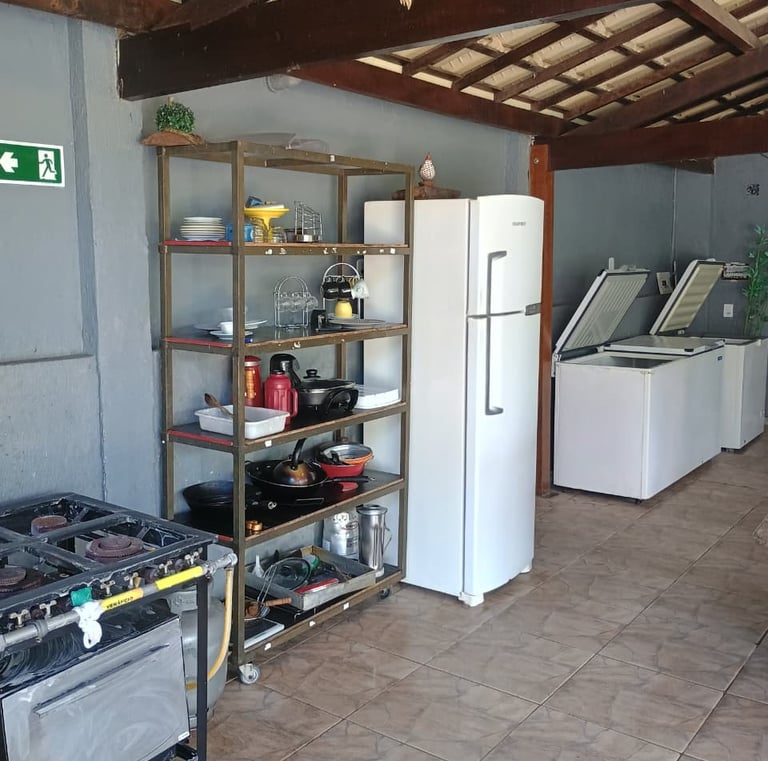 Além do salão principal, contamos com área externa integrada e uma segunda cozinha de apoio, oferecendo mais praticidade e espaço para organização do seu evento.